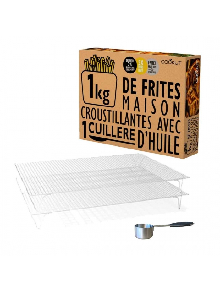 Ce kit vous permet de déguster des frites parfaitement cuites contenant 5 fois moins de matières grasses qu’avec un bain d’huile. C’est l’outil idéal autant pour les frites fraîches maison que pour les frites « au four surgelées ».