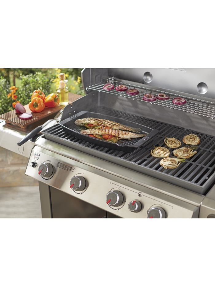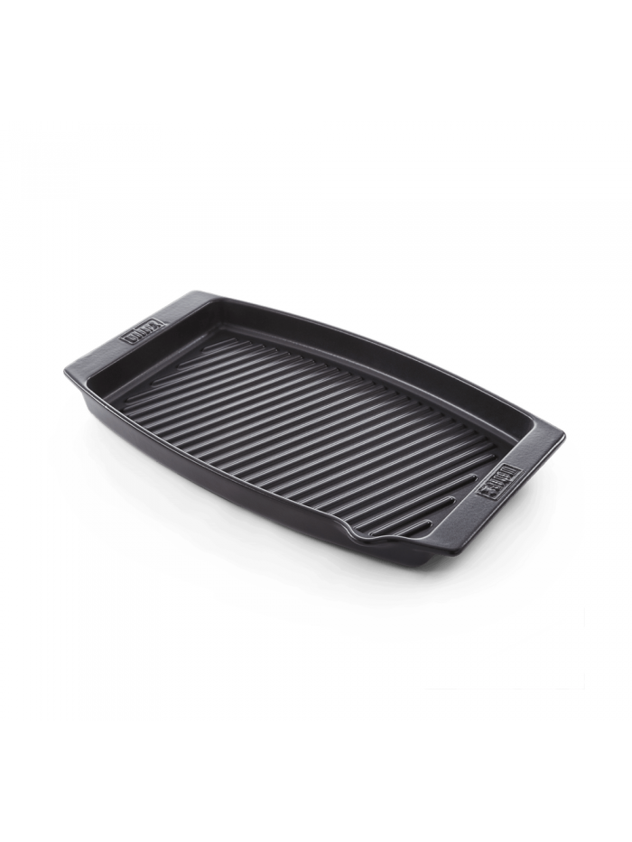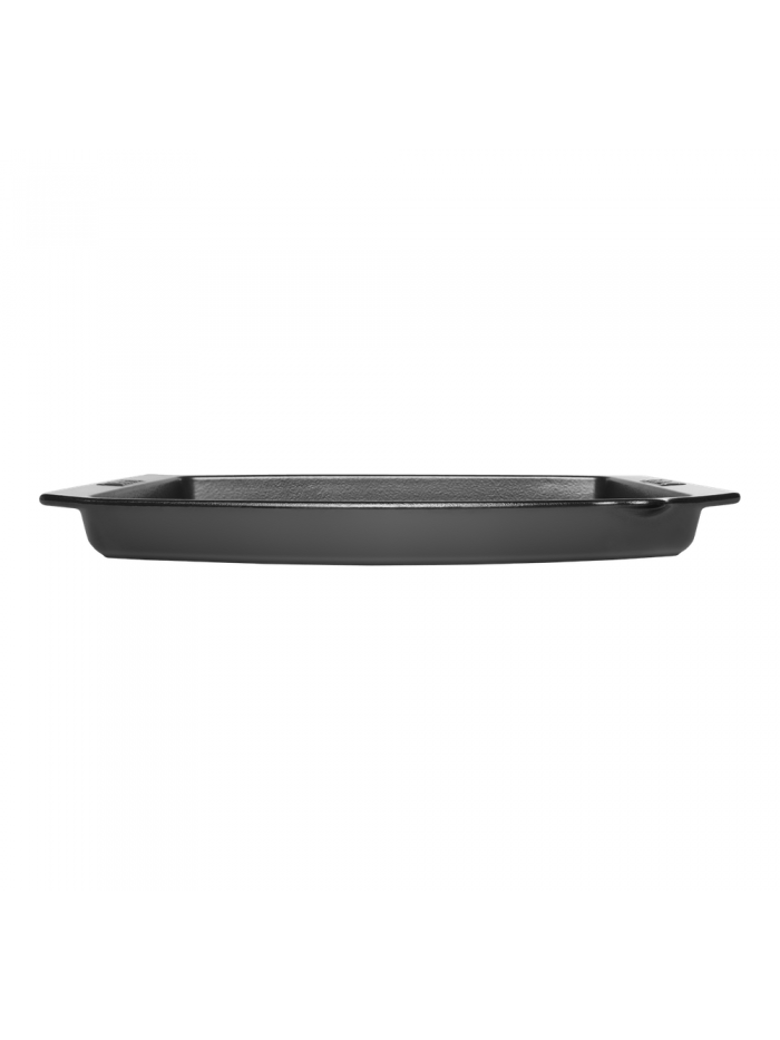 Le plat à fond cannelé en céramique est parfait pour griller et servir des plats tels que le poisson, la viande, les légumes et les aliments plus petits qui, sinon, passeraient à travers les grilles. Le fond texturé du plat est parfait pour ajouter des marques de grillade au steak.