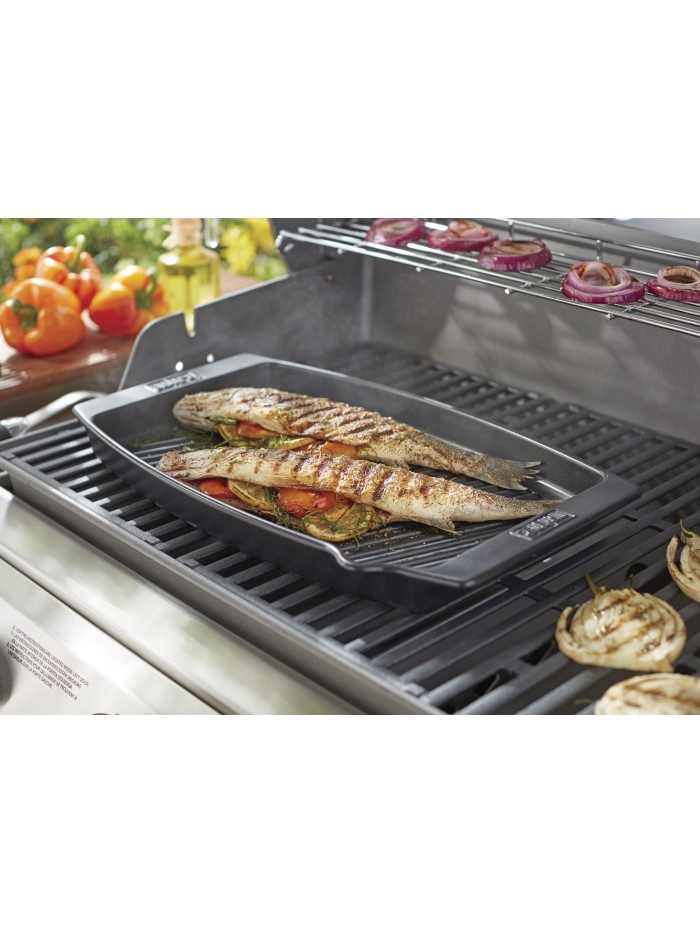 Parfait pour griller et servir des plats tels que le poisson, la viande et les légumes, avec un fond texturé pour les grillades