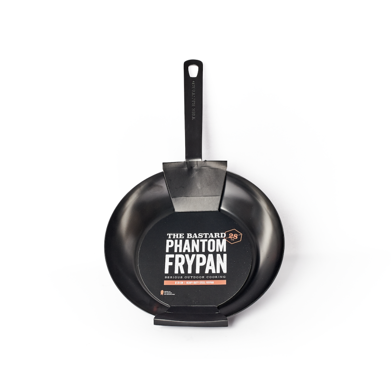 La Phantom Steel Pan est une poêle polyvalente et de bonne qualité en acier. La surface est nitrurée : elle est solide, ne rouille pas et durera des années. La poêle en acier convient à la cuisson à feu vif et direct et ne possède aucun revêtement antiadhésif chimique.