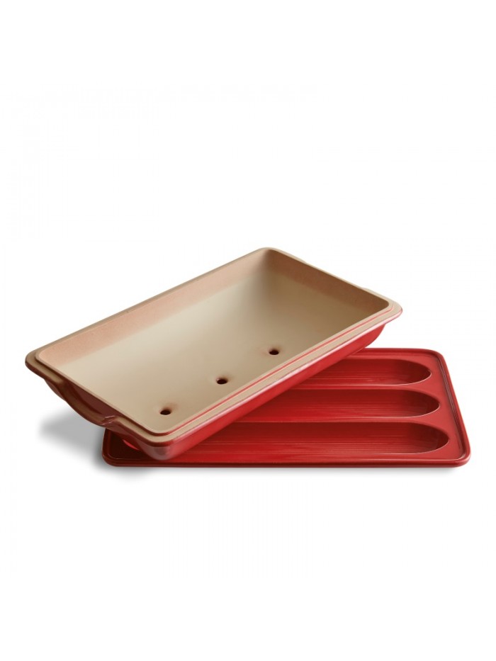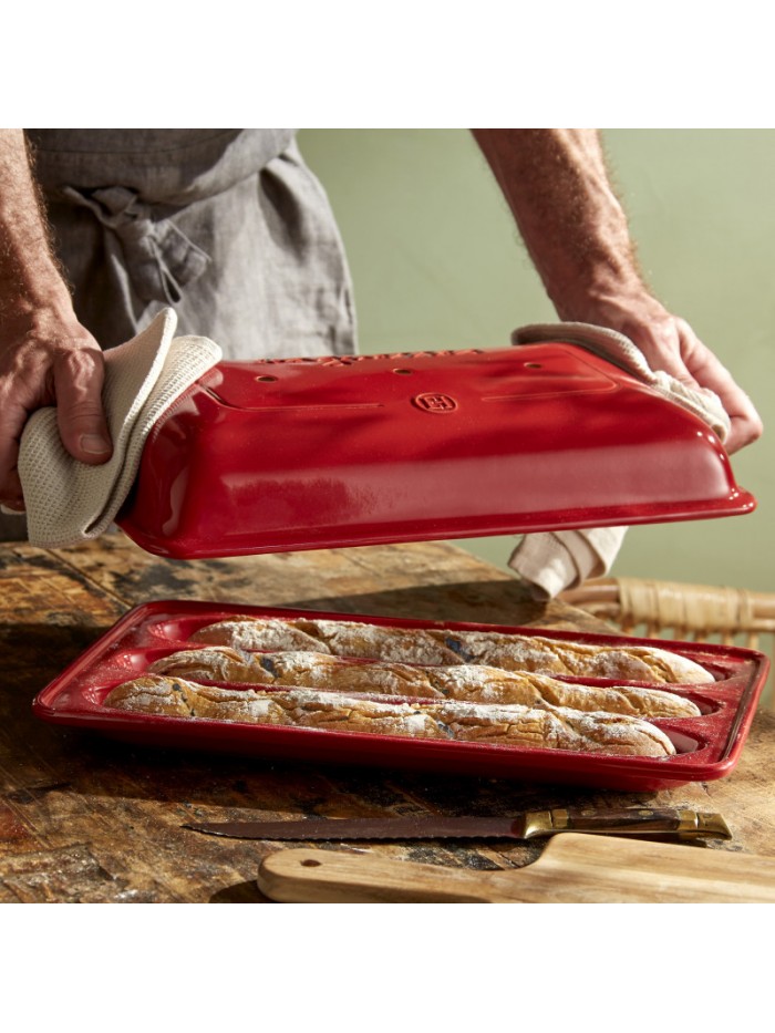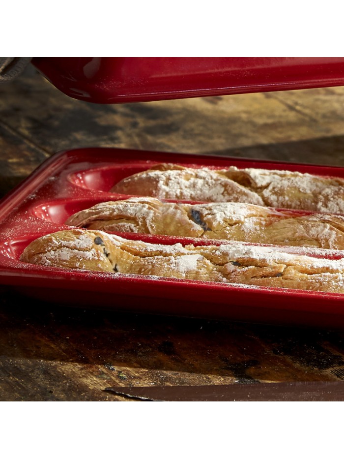 Simple à utiliser, il suffit de placer les pâtons de pâte à pain dans les encoches et de mettre le moule couvert au four. Grâce aux encoches striées les baguettes ne collent pas au moule.