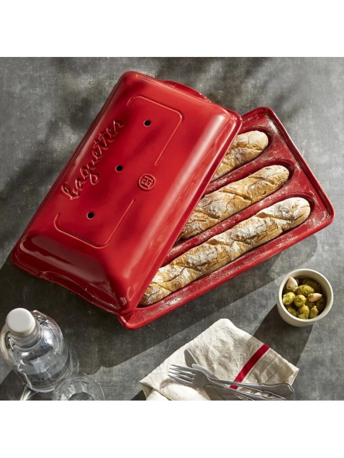 Les trous présents sur le couvercle permettent au dioxyde carbone présent dans la pâte à pain de s'échapper en cours de cuisson afin d'obtenir une croûte fine et croustillante caractéristique des bonnes baguettes françaises.