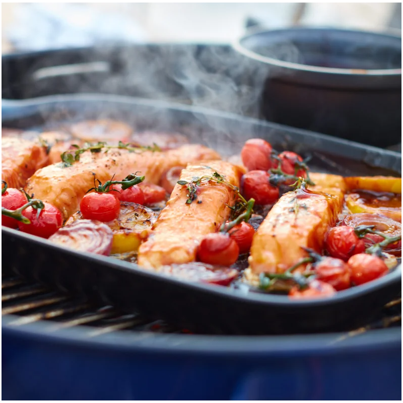 Conçu pour résister aux fortes chaleurs, ce plat supporte sans problème le passage du barbecue au four, que le couvercle soit ouvert ou fermé. Un indispensable pour toutes vos grillades, été comme hiver.