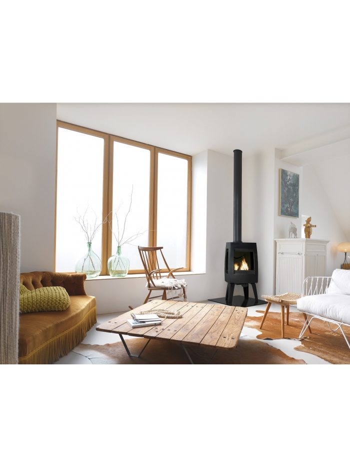 Petit poêle en version quatre pieds (ÉMERAUDE 2) ou en monobloc (ÉMERAUDE 4), il est idéal pour les petits espaces car peu encombrant.