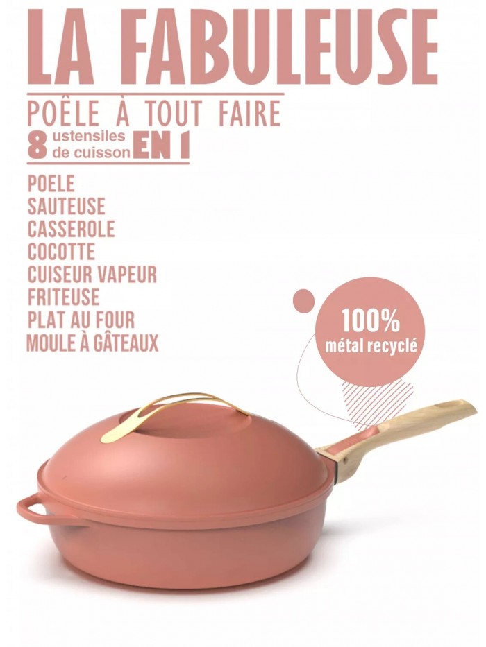 Composée de métal 100% recyclé, la Fabuleuse Poêle Cookut est saine, non toxique, sans PFOA. Avec son revêtement anti-adhérent haute performance, fini l'utilisation excessive de matières grasses. Cuisinez sainement vos repas, dans la même poêle.