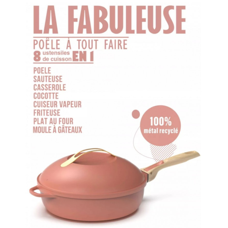 Composée de métal 100% recyclé, la Fabuleuse Poêle Cookut est saine, non toxique, sans PFOA. Avec son revêtement anti-adhérent haute performance, fini l'utilisation excessive de matières grasses. Cuisinez sainement vos repas, dans la même poêle.