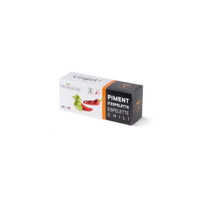 Profitez de la technologie Lingot Véritable: des recharges 100% naturelles (sans OGM ni pesticides) prêtes à l’emploi (Brevet déposé). Lingot Piment d'Espelette compatible avec la gamme de potagers d’intérieur Véritable.