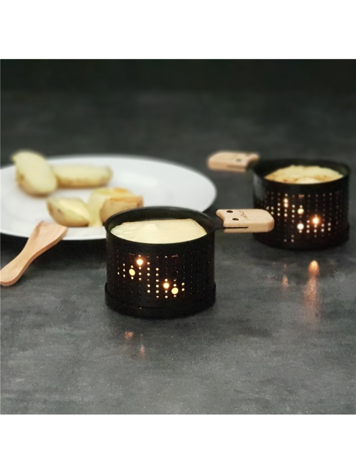 Avec le LUMI, faites fondre votre fromage en 3 minutes juste avec 2 bougies. Cet ustensile très pratique permet à chacun d’avoir son appareil à côté de lui et d’arrêter quand il veut.