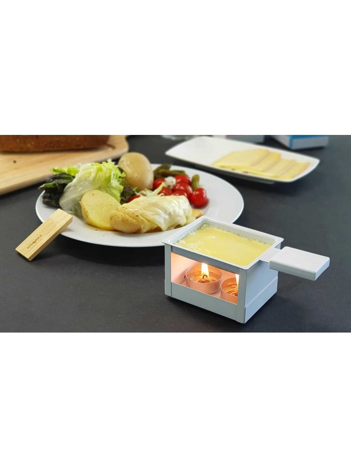 Avec Yeti, tu peux cuire ta raclette simplement à la bougie en seulement 3 minutes.
