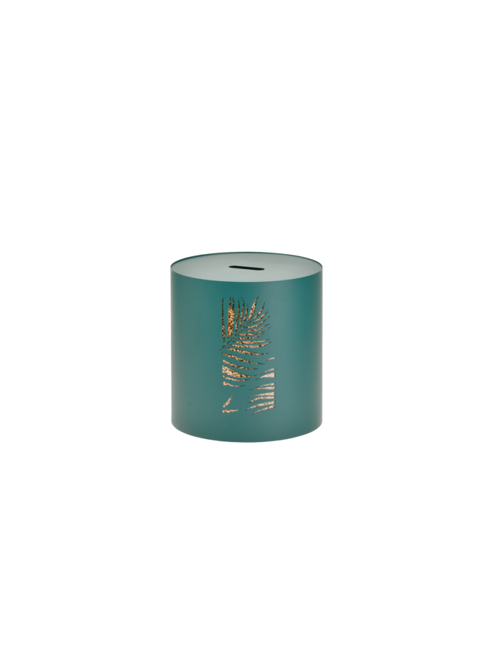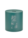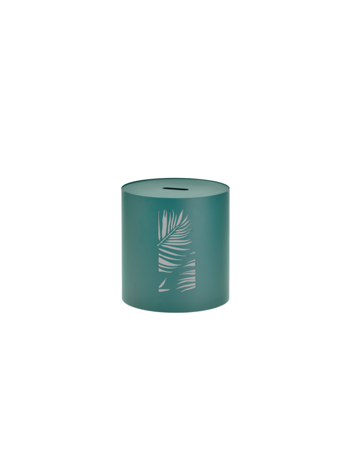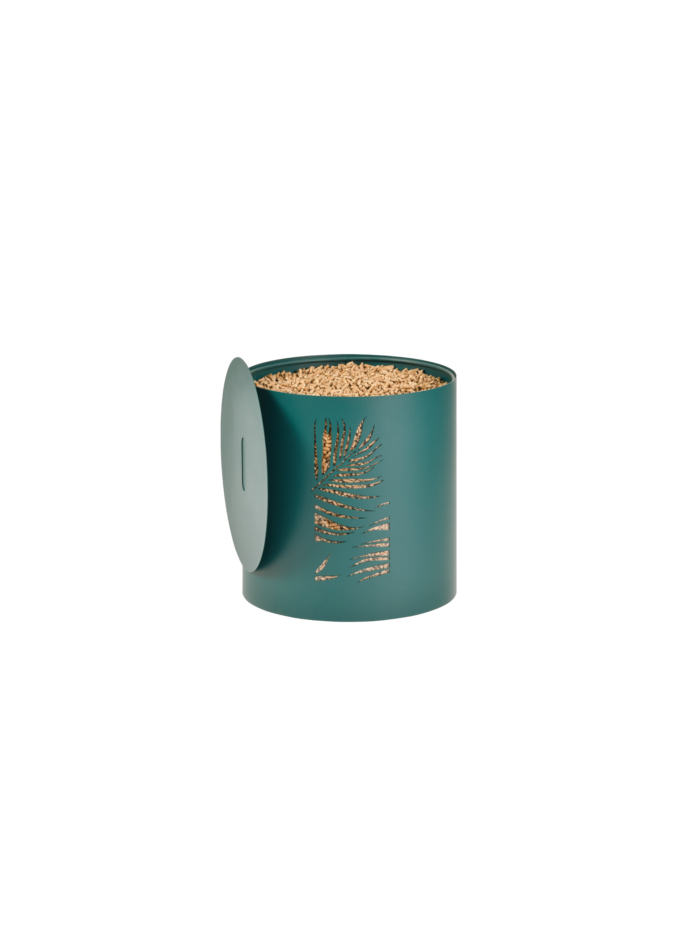 Le motif de feuilles de palmier ciselées de la réserve à granulés Florès permet de visualiser le niveau de granulés restant. La couleur noire texturée la rend très élégament sobre.