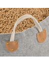 Panier à granulés pouvant contenir jusqu’à 2 sacs de granulés. Sac intérieur refermable 30% coton / 70% polyester. Poignées résistantes en corde avec finition simili marron clair