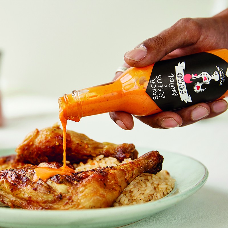 Fogo est une sauce piquante style Piri-Piri, inspirée de la gastronomie portugaise ! Elle a une texture très crémeuse, une finale citronnée et un petit kick juste parfait.