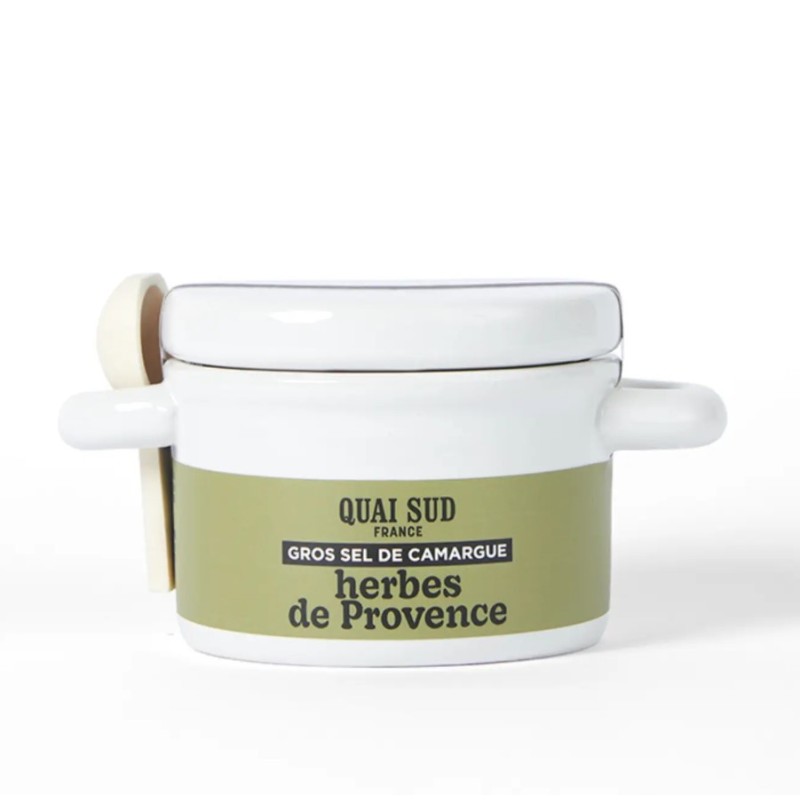 Découvrez l’authenticité du Gros Sel De Camargue Aux Herbes De Provence, encapsulé dans un élégant pot de 120g en céramique. Chaque pincée, prélevée avec sa délicate cuillère en bois, éveille vos plats de nuances provençales, transformant chaque repas en un voyage gustatif inoubliable.
