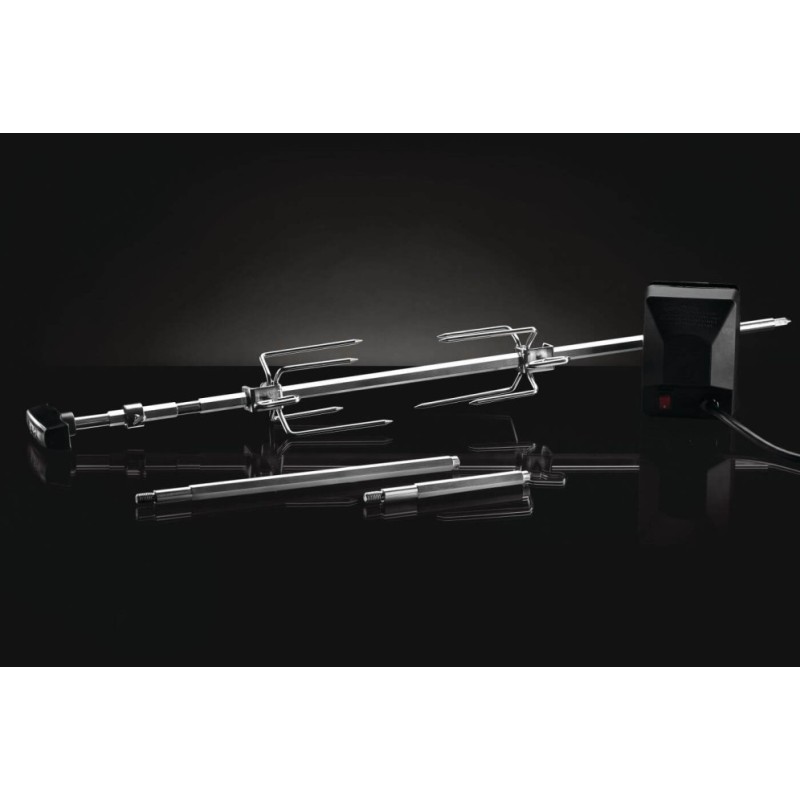 Les repas grillés à la rôtissoire sont les meilleurs. Ils sont succulents et juteux, et ils plaisent à tous. Utilisez l'ensemble de rôtissoire robuste pour grils au charbon de bois pour préparer des repas dignes d'un restaurant dans votre cour. L'ajout de charbon de bois et l'option de fumaison donnent aux mets préparés à la rôtissoire une saveur inégalée. La tige en acier inoxydable et le moteur robustes sont prêts à cuire tout ce que vous désirez. Les fourches à viande de qualité commerciale à quatre dents maintiennent vos aliments en place à l’aide de vis de serrage faciles à utiliser. Un ensemble de contrepoids est également offert pour assurer que tout tourne en douceur. Spécialement conçu pour tous les grils au charbon de bois circulaires Napoleon de 18 po et de 22 po (45,7 cm et 55,9 cm), cet ensemble de rôtissoire s'adapte à tous grils circulaires de la même taille. Multifonctionnels, astucieux et faciles à entretenir, nos accessoires vous offrent l’essentiel pour créer de délicieuses grillades. Enrichissez votre arsenal de cuisine avec une grande variété d’accessoires créatifs et élargissez vos horizons culinaires.
