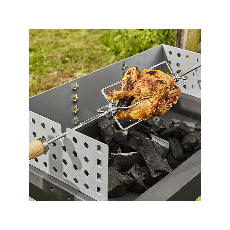 Le barbecue, c'est bien .. mais faire rôtir vos viandes, c'est encore mieux ! Grâce à cette broche et à l'un des moteurs compatibles (sur secteur ou à piles), vous pourrez lancer des cuissons longues sur des viandes jusqu'à 10kg et sans même vous en préoccuper. Quant à la matière en bois et acier chromé elle permettra à cet outil de durer dans le temps.