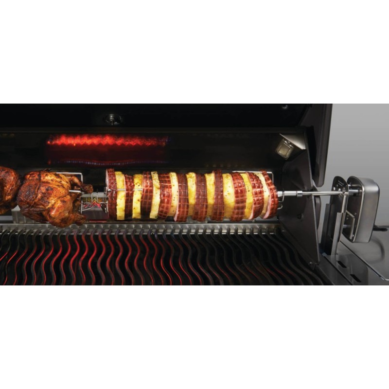 Les repas grillés à la rôtissoire sont les meilleurs. juteux et appréciés de tous. Utilisez l'ensemble de rôtissoire de qualité commerciale pour barbecues de très grand format Napoleon pour préparer des repas dignes d'un restaurant dans votre cour. La grande tige hexagonale en acier inoxydable et le moteur de qualité commerciale (capacité de 25 kg) sont prêts à cuire tout ce que vous désirez. Les fourches à viande à quatre dents en acier inoxydable retiennent les aliments en place à l'aide de vis moletées faciles à utiliser. Et il y a même un ensemble de contrepoids, juste au cas où vous cuisiniez pour une armée.