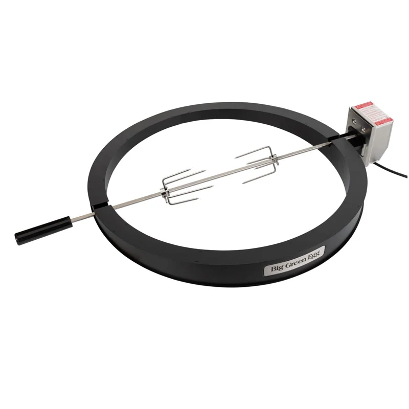 A vous les poulets et autres rôtis au Big Green Egg ! Vous installerez l'anneau de rôtisserie sur la base en céramique, d'embrocher votre poulet, ananas ou autres pièces à rôtir, et de rabattre le couvercle de votre EGG. Le moteur électrique silencieux permet la rotation régulière de vos ingrédients, pour un résultat savoureux.