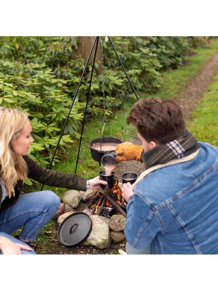 Préparez les plats les plus délicieux sur le feu. Grâce aux différentes chaînes, vous pouvez suspendre une grille ou une casserole individuelle au-dessus du feu.
