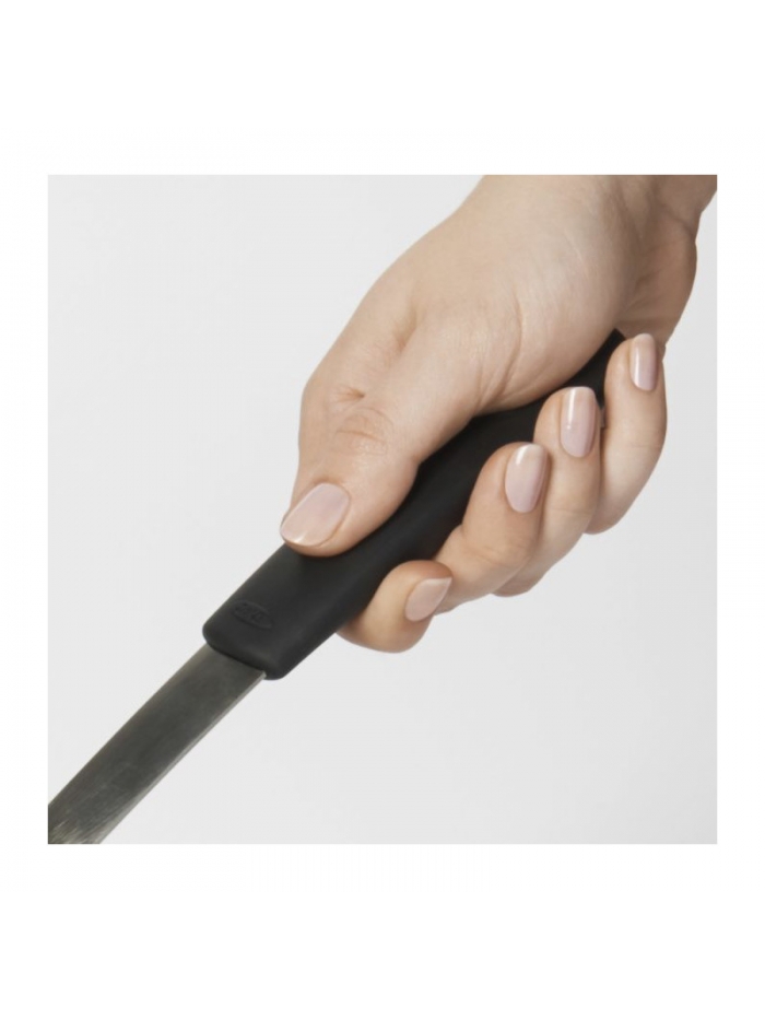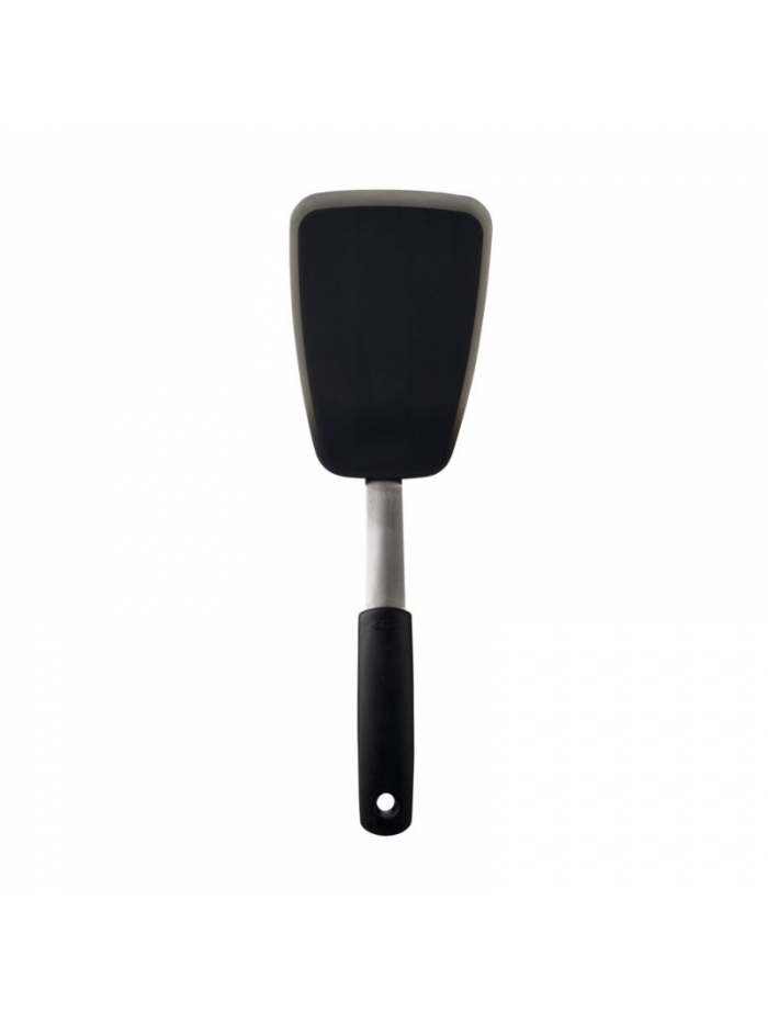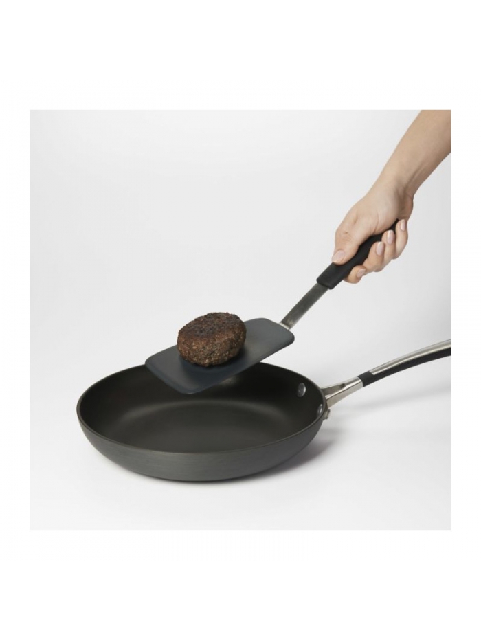 Voici une spatule à retourner bien pensée et pratique pour la cuisine du quotidien. Sa tête flexible et ses bords biseautés glissent facilement sous l’aliment pour le retourner ou le transporter sans le casser. Vous pourrez donc maitriser et obtenir une cuisson parfaite de vos viandes, œufs, pancakes, poissons… La palette pleine de 10 cm permet de se saisir pleinement de l’aliment et de le transporter en entier et sereinement. Fabriquée en silicone, cette spatule de cuisine peut être utilisée dans les poêles, sauteuses, casseroles avec revêtement antiadhésif sans craindre de rayer. Elle est résistante à la chaleur jusqu’à 315°C. Elle comporte aussi une armature en acier inoxydable. Son manche antidérapant est très ergonomique. Pour le nettoyage, elle peut être mise au lave-vaisselle.