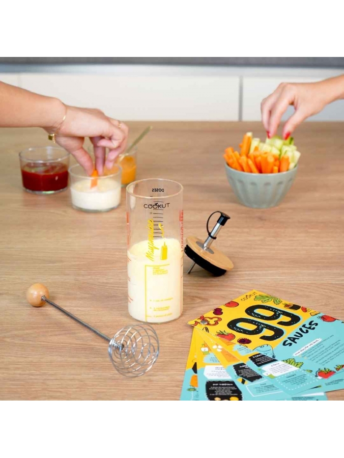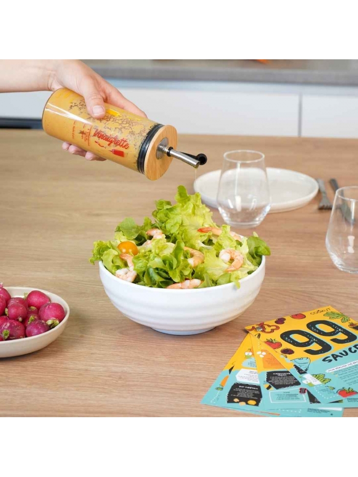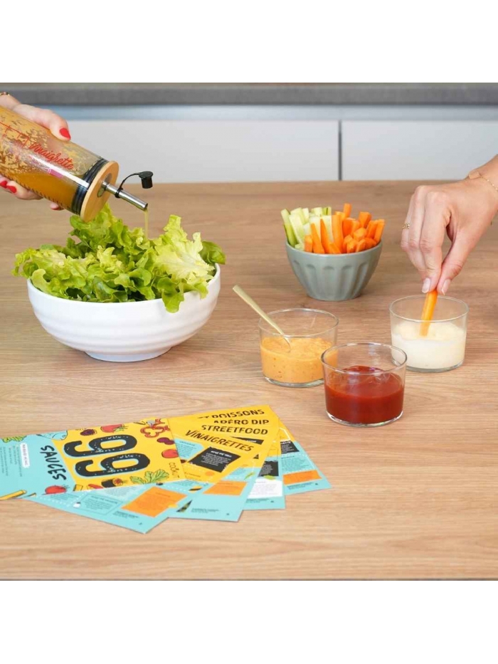 Avec ce shaker, oubliez les sauces industrielles et préparez super facilement 99 sauces délicieuses, classiques ou originales, pour vos salades, viandes, poissons, apéros !