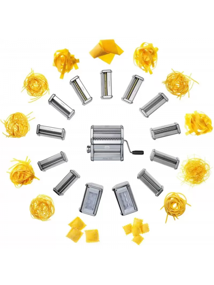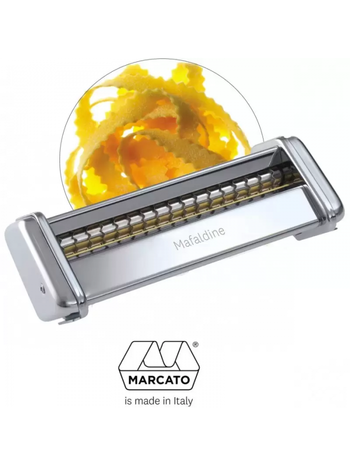 Envie de pâtes fraîches ? Avec la Marcato attachement pour machine à pâtes, vous pouvez préparer vous-même de délicieuses pâtes. Chaque région italienne a ses propres épaisseurs et largeurs de pâtes. Avec les accessoires pour le Marcato Atlas 150, vous pouvez réaliser différentes sortes de pâtes. Cet accessoire convient pour les mafaldines, un type de pâtes avec un diamètre de largeur de 8 mm. Il est recommandé de régler l'Atlas 150 sur la position 6 pour obtenir les meilleurs résultats. Vous pouvez utiliser cet accessoire uniquement à la main.