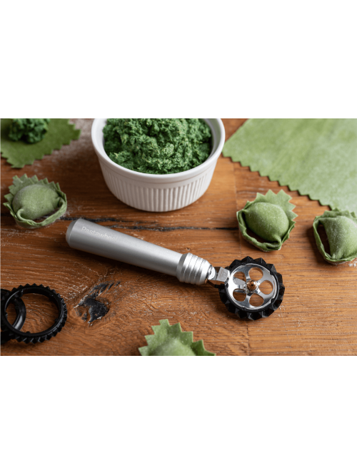 La roulette Pastawheel de MARCATO permet de couper rapidement la pâte dans tous les formats que vous suggère votre imagination. Elle est livrée avec 3 roulettes interchangeables facilement d'un seul geste pour découper en 3 différentes formes selon vos besoins: coupe droite, zigzag étroit, et zizgag large. La roulette est adaptée à n'importe quelle pâte, elle est efficace aussi bien avec des pâtes salée qu’avec des pâtes sucrées. Vous pouvez varier l’épaisseur de la feuille et couper avec précision. La structure centrale des roulettes et l’axe de support sont en acier chromé, afin de permettre une coupe stable et de garantir un usage de longue durée.