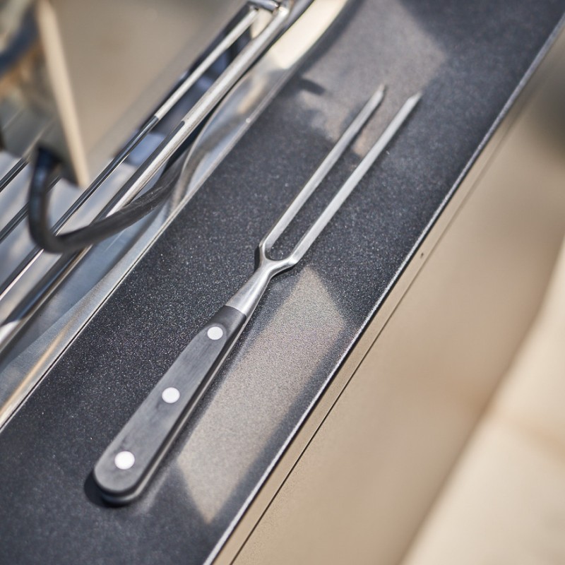 La fourchette à viande Forge Adour est en inox avec un manche POM noir. Très résistante, elle permet de maintenir les pièces de viande pendant la découpe. Passe au lave-vaisselle.