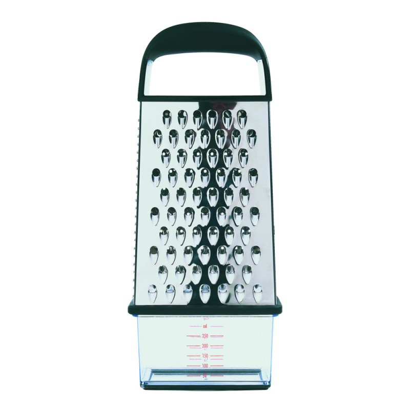 Le collecteur en plastique fourni avec la râpe est gradué et vous permet ainsi de mesurer les quantités râpées, les collecter facilement et même les conserver, grâce à son couvercle.