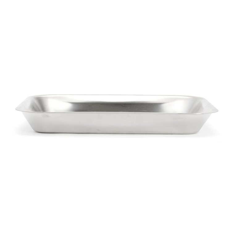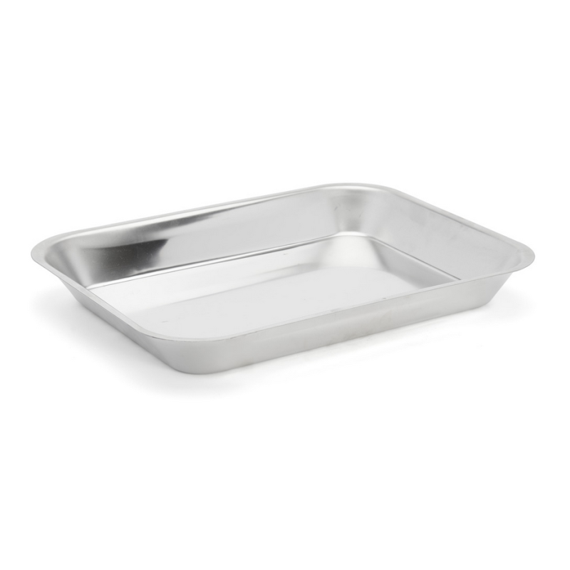 Plats en acier inoxydable conformes aux dimensions professionnelles. Résistants aux chocs. Passent au lave-vaisselle.