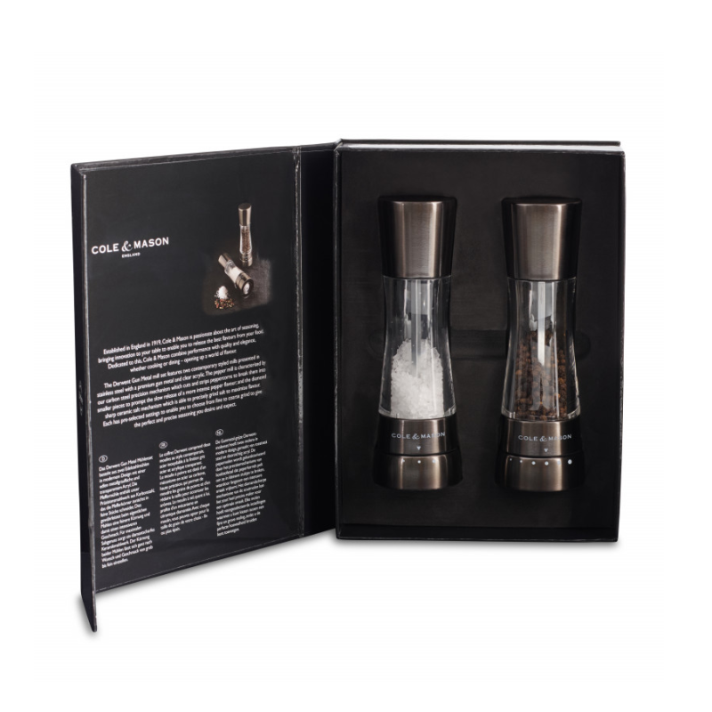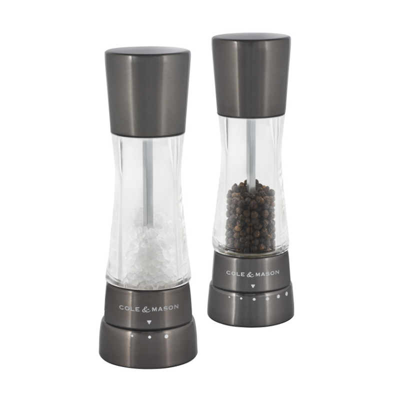 Les moulins Derwent aux lignes épurées, en acier inoxydable et acrylique, procure une mouture de qualité et un contrôle du dosage parfait pour la cuisine au quotidien.