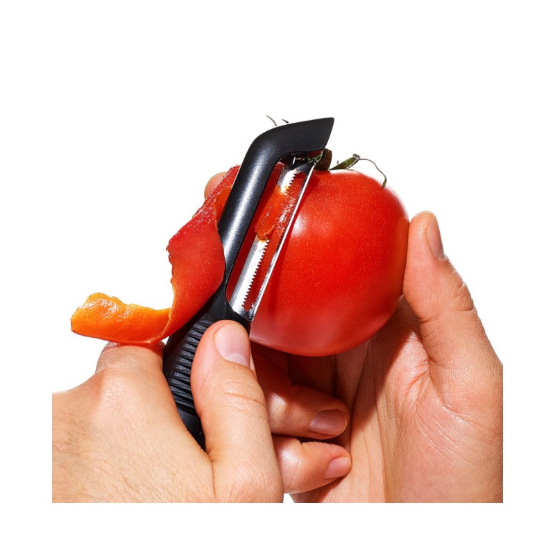 Vous ébouillantez encore vos tomates pour pouvoir les éplucher ? C'était avant d'adopter notre éplucheur à tomates OXO ! Sa lame oscillante et finement dentelée en acier inoxydable est très tranchante.