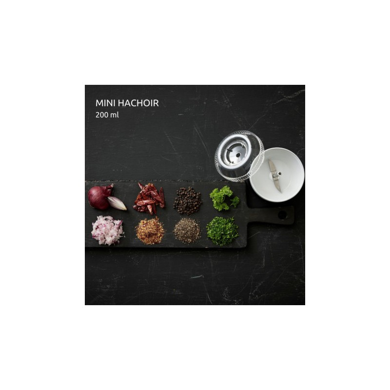 - Un mini-hachoir d'une contenance de 200 ml pour broyer et moudre de petites quantités de fruits secs, chocolat, herbes fraiches...
