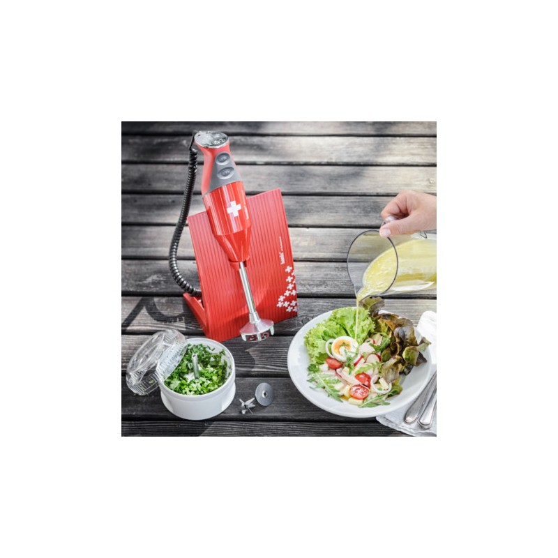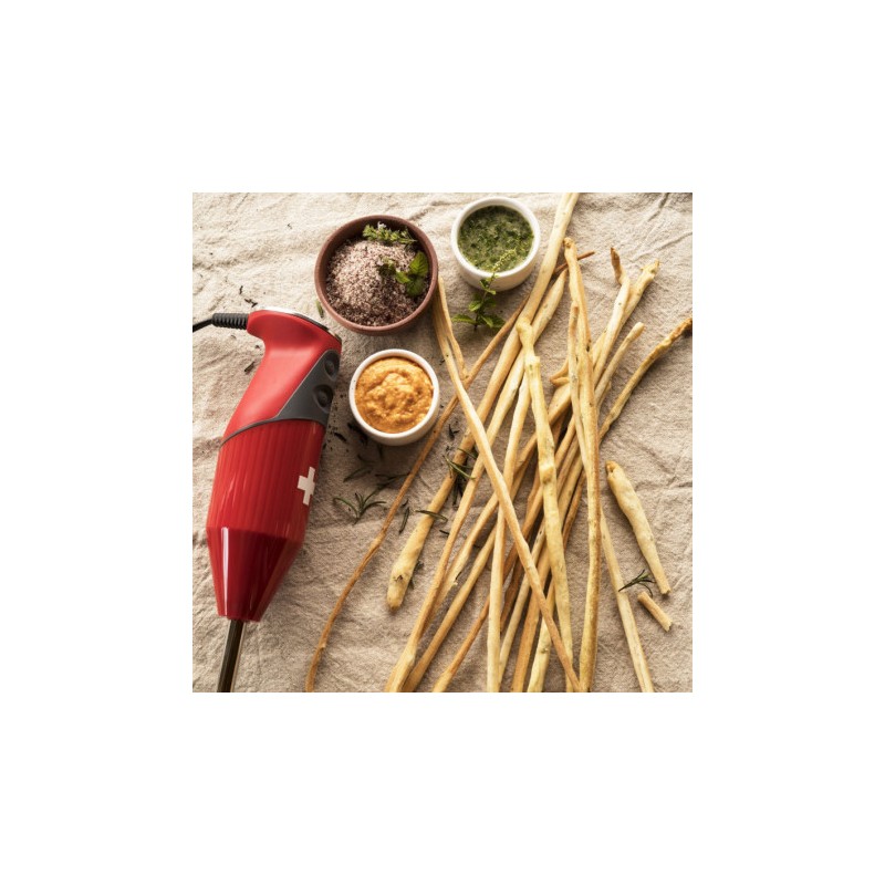Le SwissLine est le mixeur plongeant phare de Bamix, avec sa puissance de 200 W et ses 18 000 tours/minute, il vient à bout de n'importe quelle préparation en un temps record !