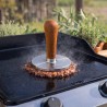 Découvrez la presse burger en fonte d'inox avec manche en bois de hêtre de chez Eno, de quoi réussir des smash burger à chaque fois!