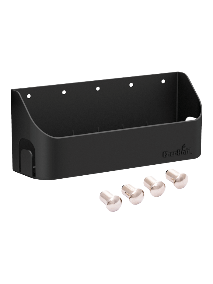 La plupart des barbecues Char-Broil et des fumoirs sont conçus avec des orifices pré-percés pour y intégrer le système Gear Trax. Organisez votre espace cuisine selon vos envies avec des fixations et boutons pour accrocher vos ustensiles de barbecue : efficacité et confort garantis. Grâce aux accessoires, comme le combo Gear Trax, vous êtes sûr que votre plan de travail reste toujours ordonné. Gardez vos ustensiles et vos épices à portée de main. Le kit comprend quatre crochets, le panier à condiments et le matériel de fixation.