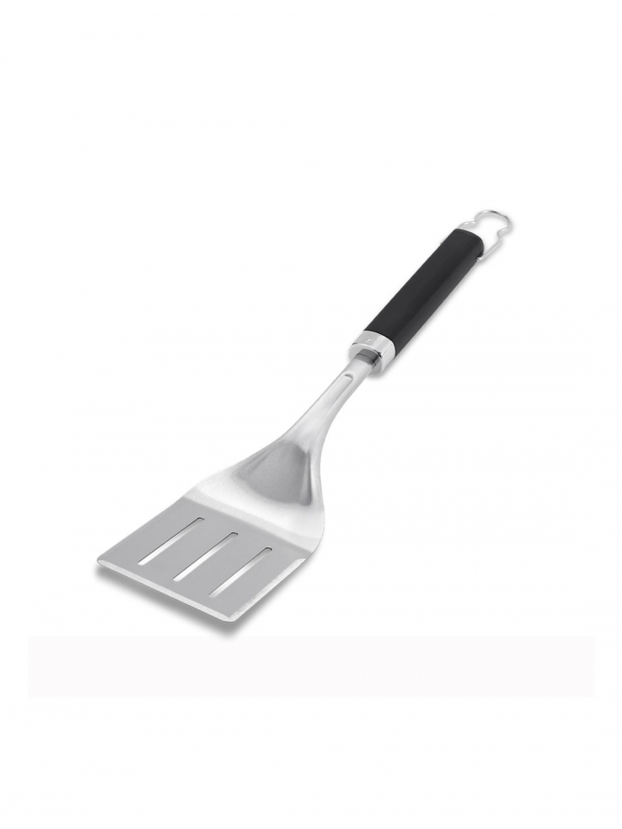 La spatule premium Weber en inox permet de déposer ou de retirer les aliments en cuisson sur le barbecue sans effort. Le manche antidérapant et doux facilite la manipulation pour retourner vos steaks ou les servir du barbecue à l’assiette en toute sécurité.