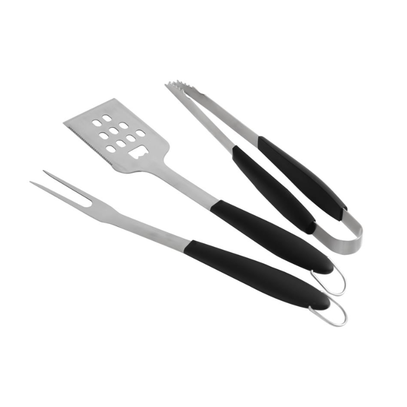 Ce set comprend une spatule, une fourchette et une pince, toutes dotées de poignées ergonomiques en TPR pour une prise en main confortable.