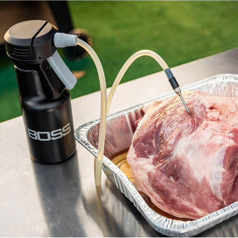 Obtenez des cuissons juteuses et savoureuses à chaque fois avec la nouvelle bouteille multi-usage avec injecteur ! Vaporisez ou injectez vos aliments BBQ favoris pour améliorer leur saveur ou texture et les garder tendres et juteux pendant les sessions de cuisson lente et à basse température