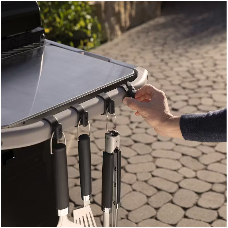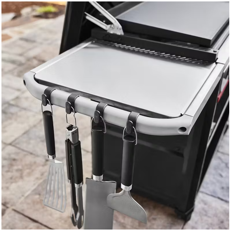 • Les éléments s'enclenchent sur le rail Weber Works pour garder vos accessoires à portée de main.