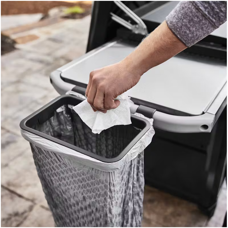 Gardez les essuie-tout, vos outils de cuisine et un sac poubelle à portée de main avec un kit de rangement pratique Weber Works. Ces accessoires se fixent facilement au rail Weber Works afin que vous puissiez avoir vos objets essentiels lorsque vous en avez besoin.