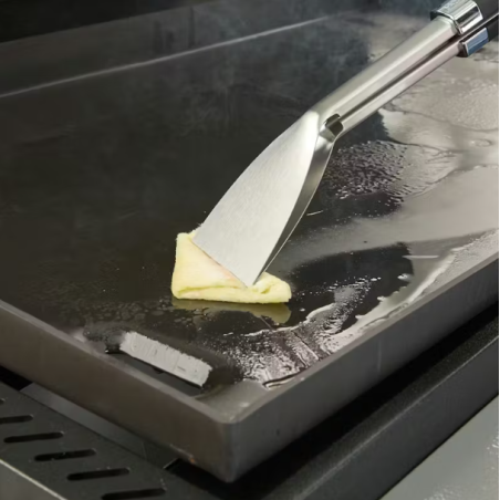 Saisissez, retournez ou retirez facilement les aliments délicats de la plancha avec la pince à embouts plats. Sa surface de préhension lisse permet de manipuler des paninis ou du fromage grillé sans écraser le pain croustillant et ne perce pas le saumon ou les blancs de poulet lors de leur retournement ou de leur retrait. Sa forme inclinée vous permet de saisir confortablement les feuilles de papier essuietout pour le nettoyage ou le culottage de votre plancha.
