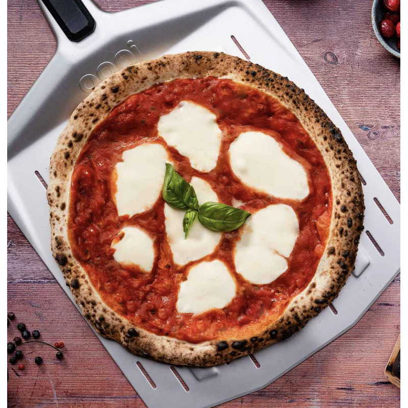 Le bord effilé de la pelle vous permet de la glisser directement sous la base de vos pizzas, tandis que les perforations vous garantissent une cuisson parfaite à tous les coups, car elles facilitent l'évacuation de la vapeur, ainsi que de l'excès de farine de la base des pizzas.
