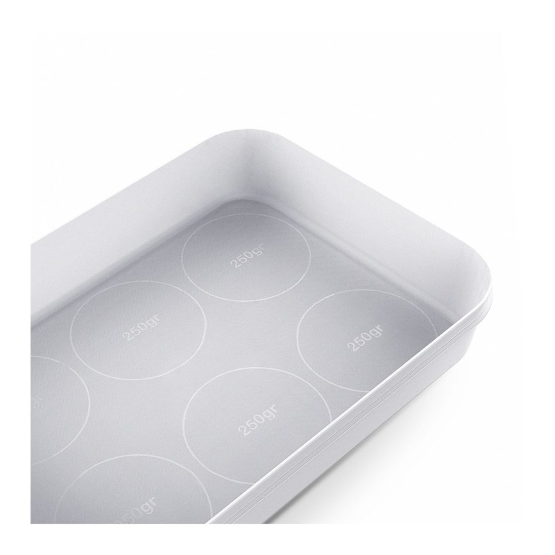 • Design : Les parois internes lisses et fuselées sont pensées pour faciliter la récupération des pâtons en toute simplicité. Un marquage au fond de la boîte assure un positionnement correct pour les six boules de pâte, ajoutant une touche de praticité à votre expérience de préparation. Le couvercle arbore un design élégant à l'effigie de ZiiPa, orné de motifs à relief subtils.