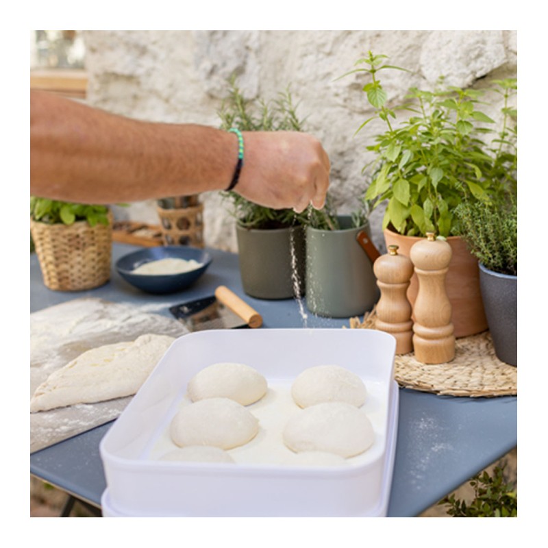 La boîte à pâtons Minola offre un généreux espace de stockage pouvant accueillir jusqu'à six pâtons. La boîte à un couvercle hermétique qui, favorise la levée et la fermentation de vos préparations ainsi, empêche à l'air de passer pour ne pas les sécher. D'une utilité maximale, son format est parfaitement adapté pour être placée avec facilité dans un réfrigérateur.