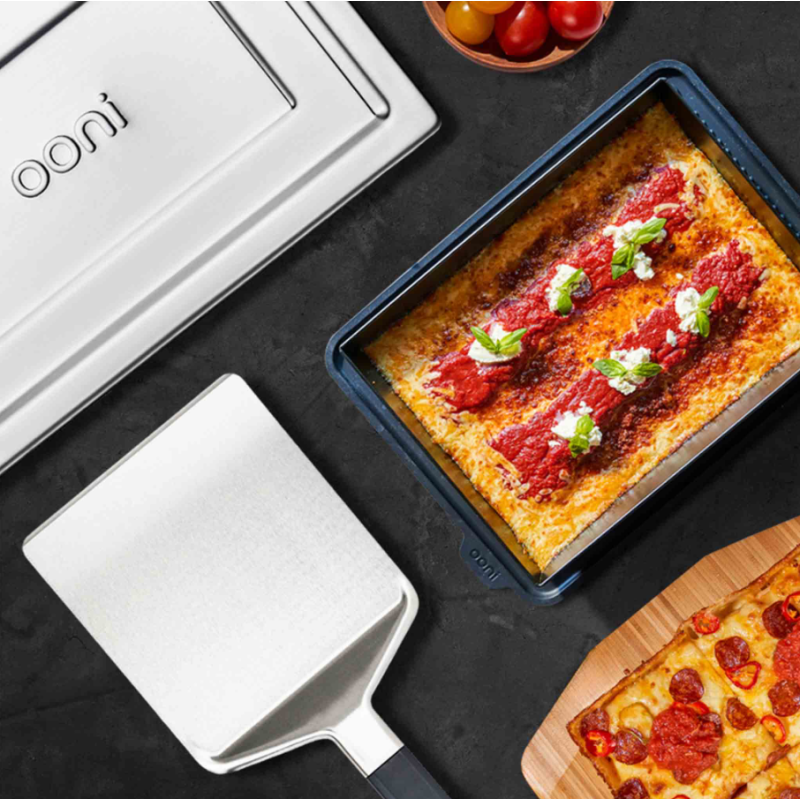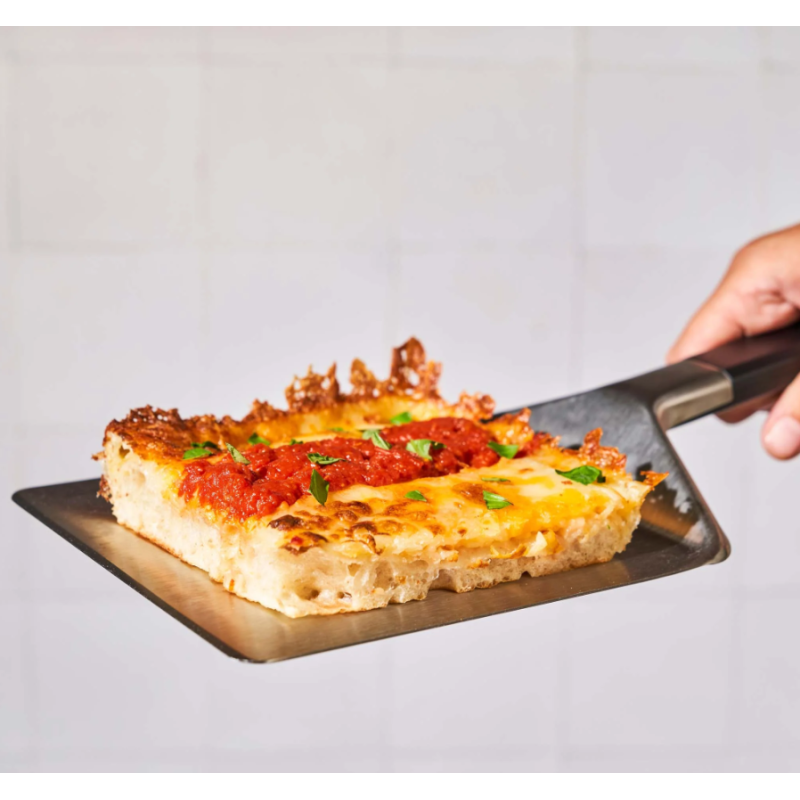 La spatule Ooni est compatible avec les moules à pizza Détroit Ooni. Nous avons conçu sa tête large pour soulever votre pizza sans en déchirer la base.