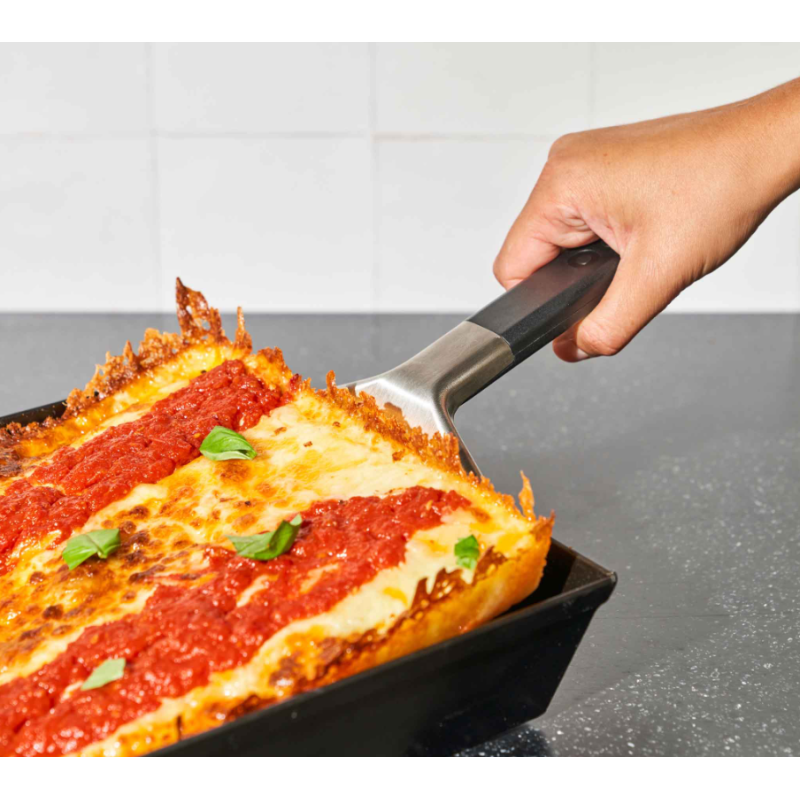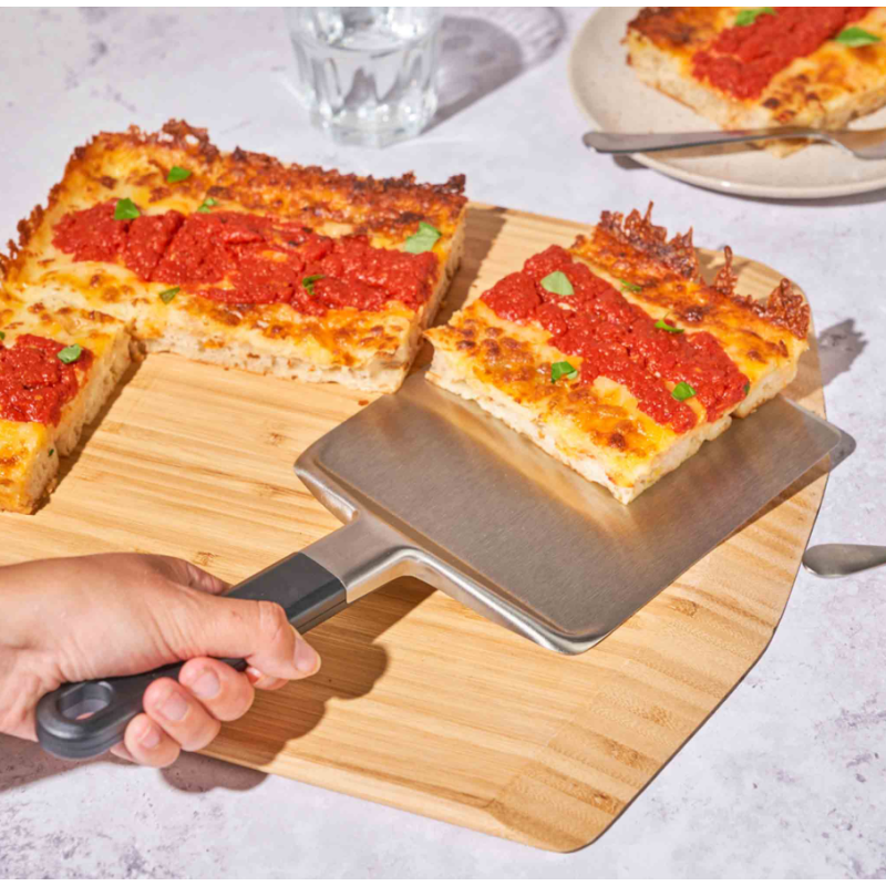 La spatule Ooni est l'outil idéal pour démouler et découper vos pizzas épaisses et autres pizzas pan avant de les servir.