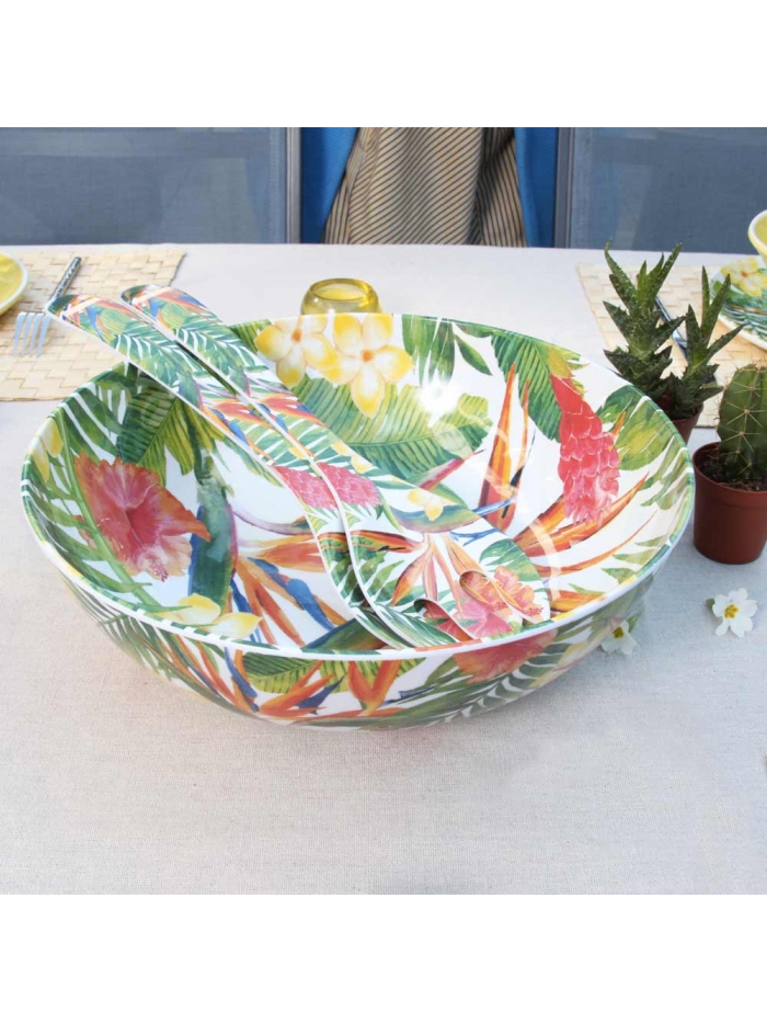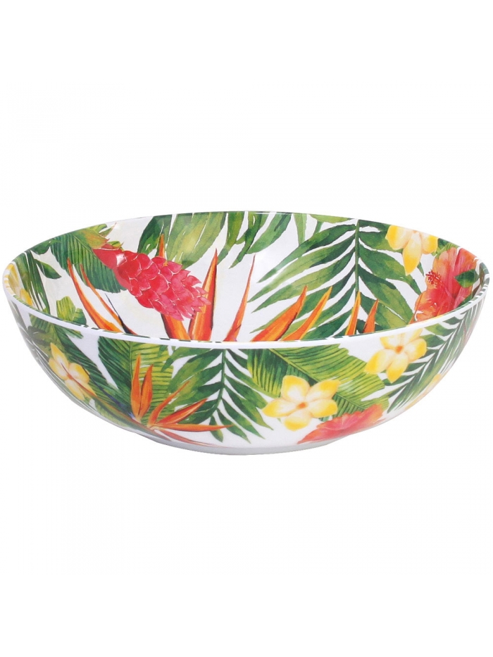 Utilisez ce grand saladier en mélamine design de 31 cm aussi bien en intérieur qu’en extérieur sur la terrasse, au bord de la piscine, lors d’un grand déjeuner en famille ou entre amis. Il décorera aussi vos buffets de fête. Soignez vos présentations avec ce grand saladier coloré aux motifs fleurs exotiques imprimés à l'intérieur et l'extérieur. Il sera parfait pour contenir et embellir vos plus belles confections : salades composées et salades fruitées !