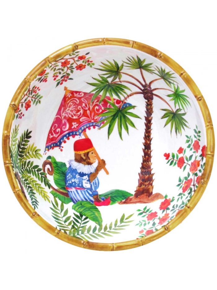 Optez pour une vaisselle originale pour colorer vos tables ! Le saladier profond Singes de Bali décoré à l'intérieur et à l'extérieur mettra votre tablée en valeur.