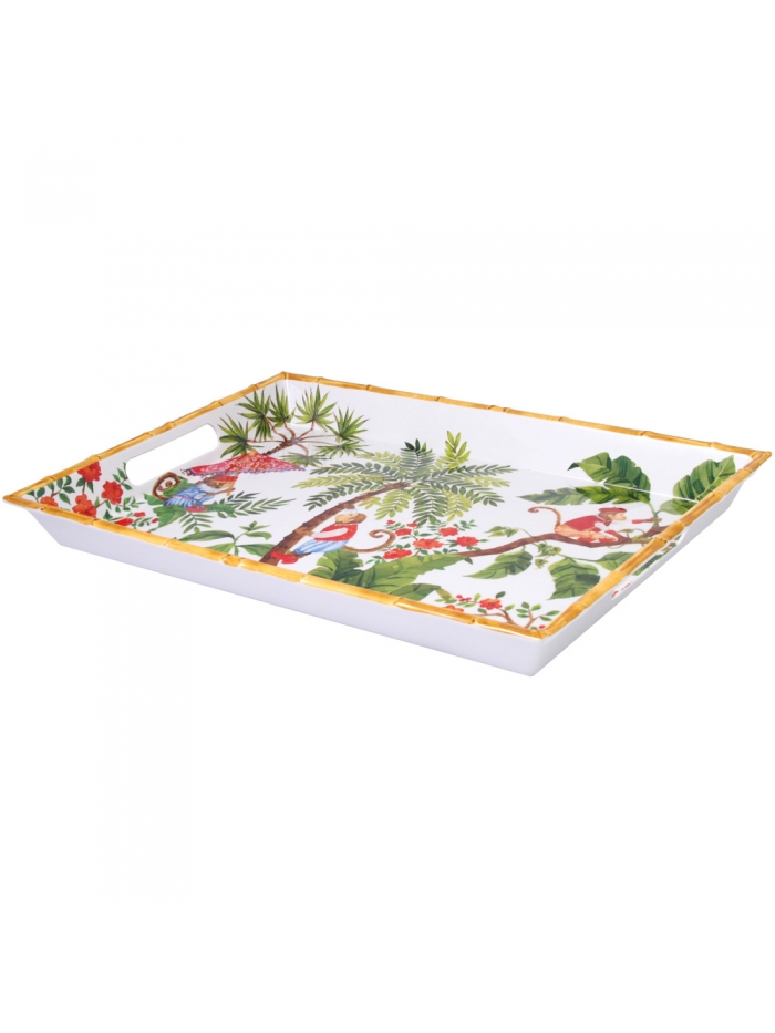 Optez pour une vaisselle originale pour colorer vos tables ! Le grand plateau Singes de Bali décoré à l'intérieur mettra votre tablée en valeur.