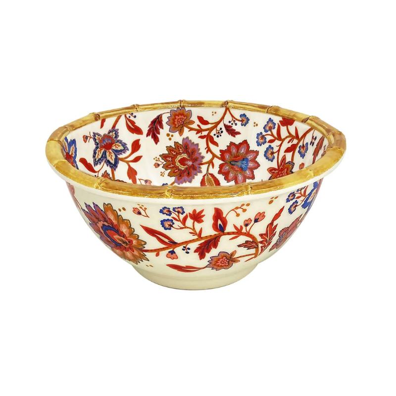 Ce petit bol en mélamine, décoré à la fois à l'intérieur et à l'extérieur, est orné de motifs fleuris aux couleurs chaudes de l’Inde. Ses teintes harmonieuses évoquent la richesse et la beauté naturelle de Jaipur.